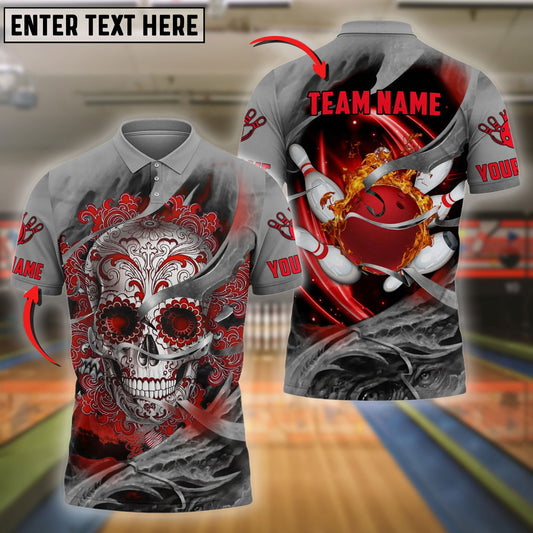 Custom Skull Bowling Polo Shirt for Men, Personalized Team Name Shirt, Bowler Uniform Outfit, League Bowling Team Shirt.