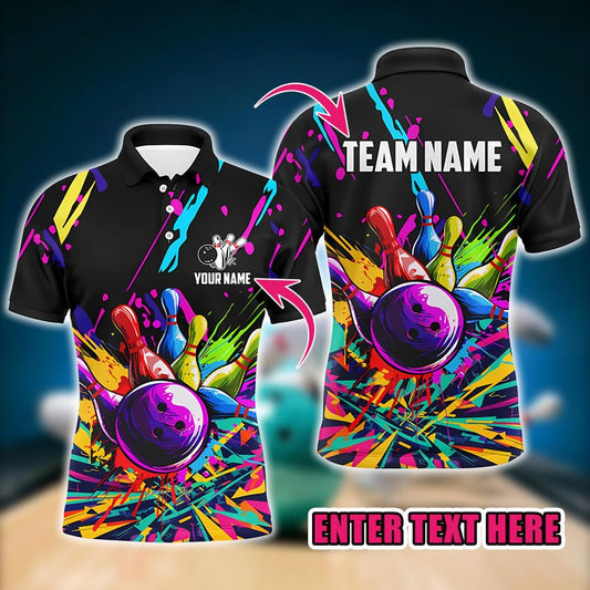 Custom Colorful Bowling Polo for Men, Personalized Team Polo Shirt for Bowlers, League Uniform Outfit, Gift for Bowling Lovers.