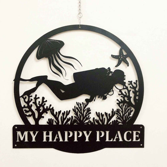 Personalized Diver Name Metal Wall Art, Scuba Beach House Gift