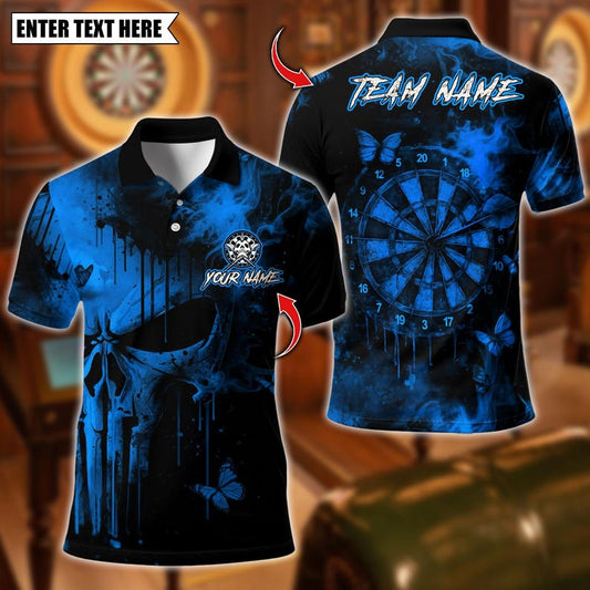 Personalized Name Dart Polo Shirt, Skull With Dartboard Design ,Custom Team Shirt for Men, Gift for Darts Players