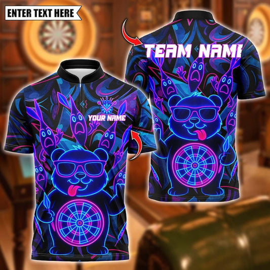 Personalized Name Dart Polo Shirt, Halloween Bear With Dartboard Design ,Custom Team Shirt for Men, Gift for Darts Players