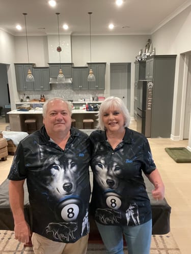 We love the shirts we bought for playing doubles. The wolves actually look like our huskies especially Vito Grato! Comfortable and true to size. We even bought one for our daughter who shoots pool with us.