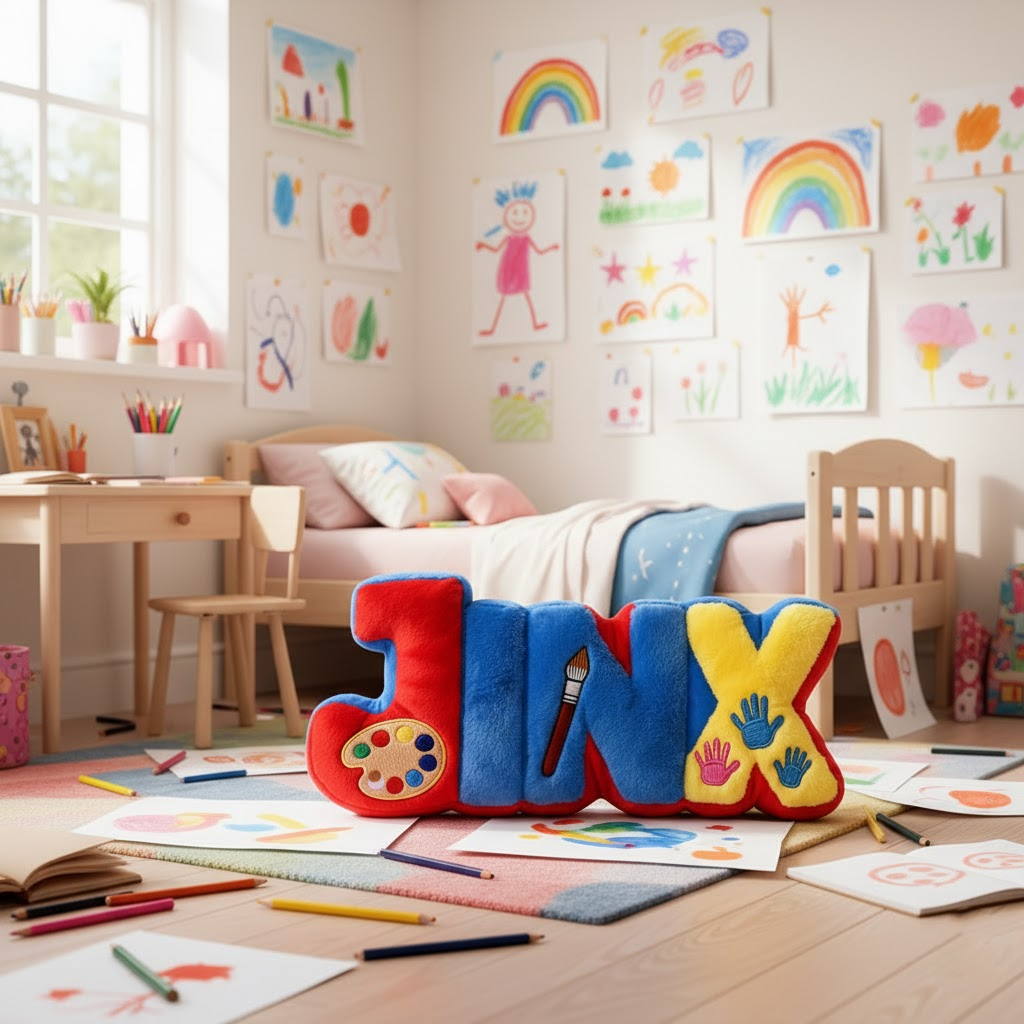 🎨 Art Lover Name Pillow – Custom Creative Kids Room Decor Gift