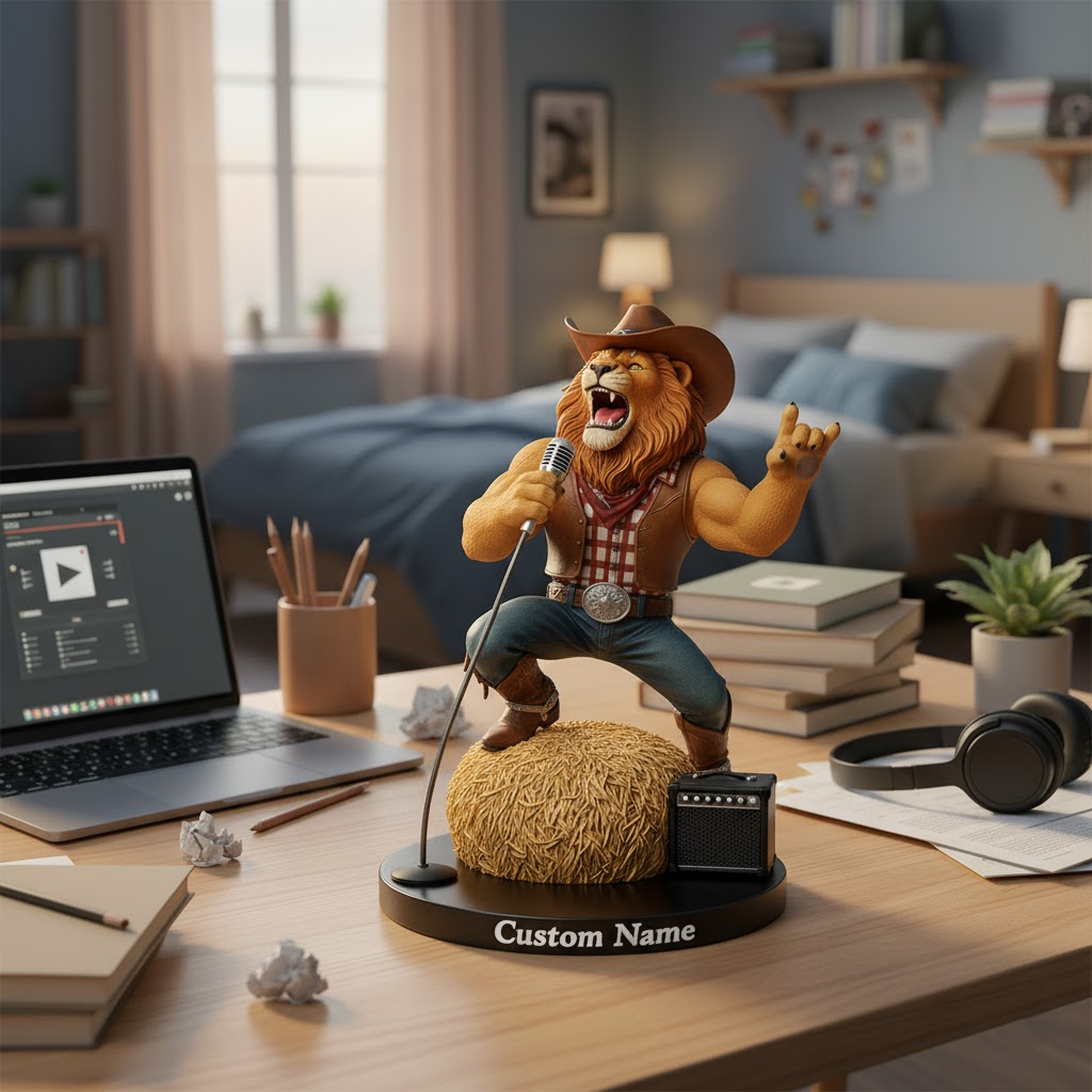 🦁 Custom Cowboy Lion Figurine – Personalized Country Singer Statue for Music Fans 1