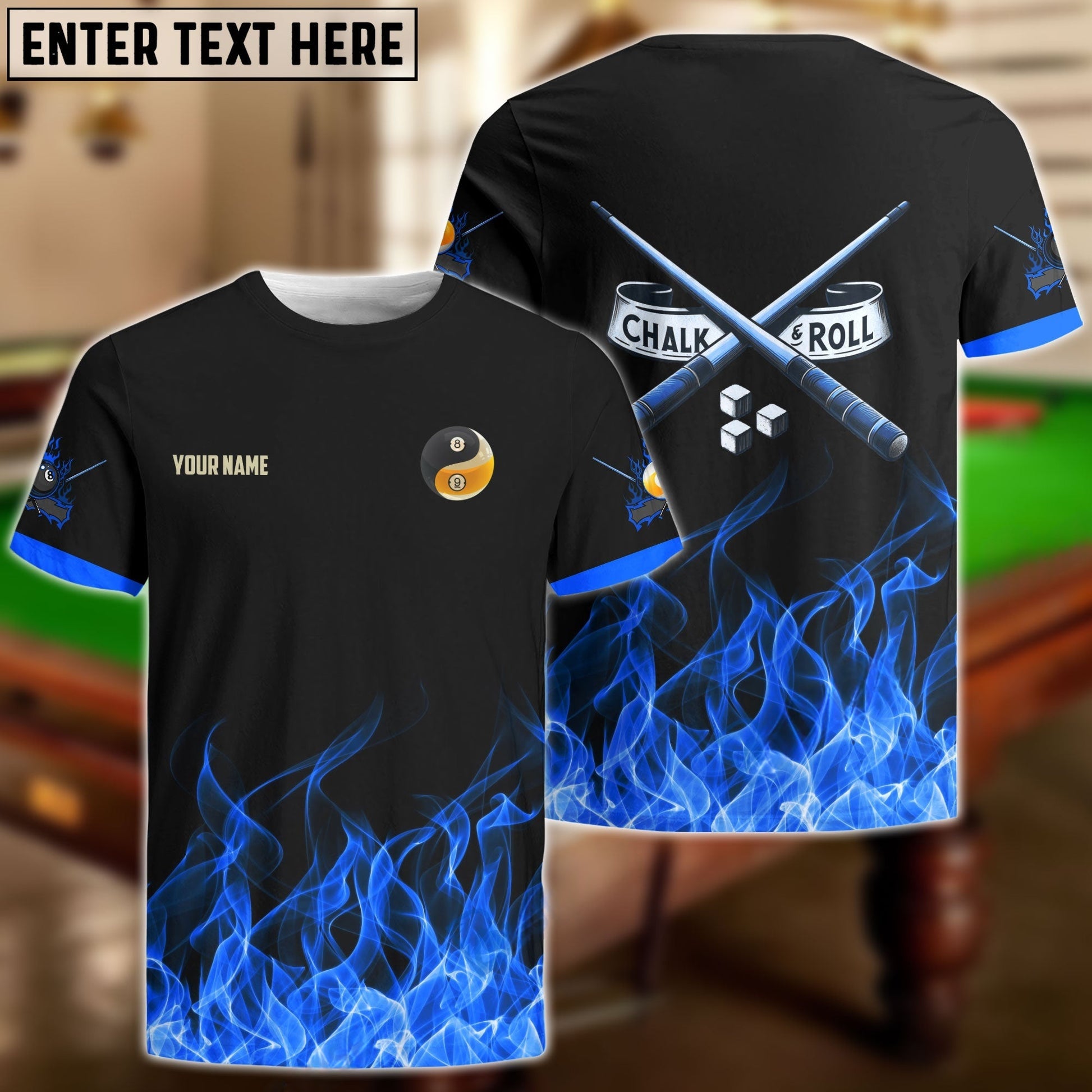 Billiards 8-Ball & 9-Ball Fire Pattern Blue Shirt