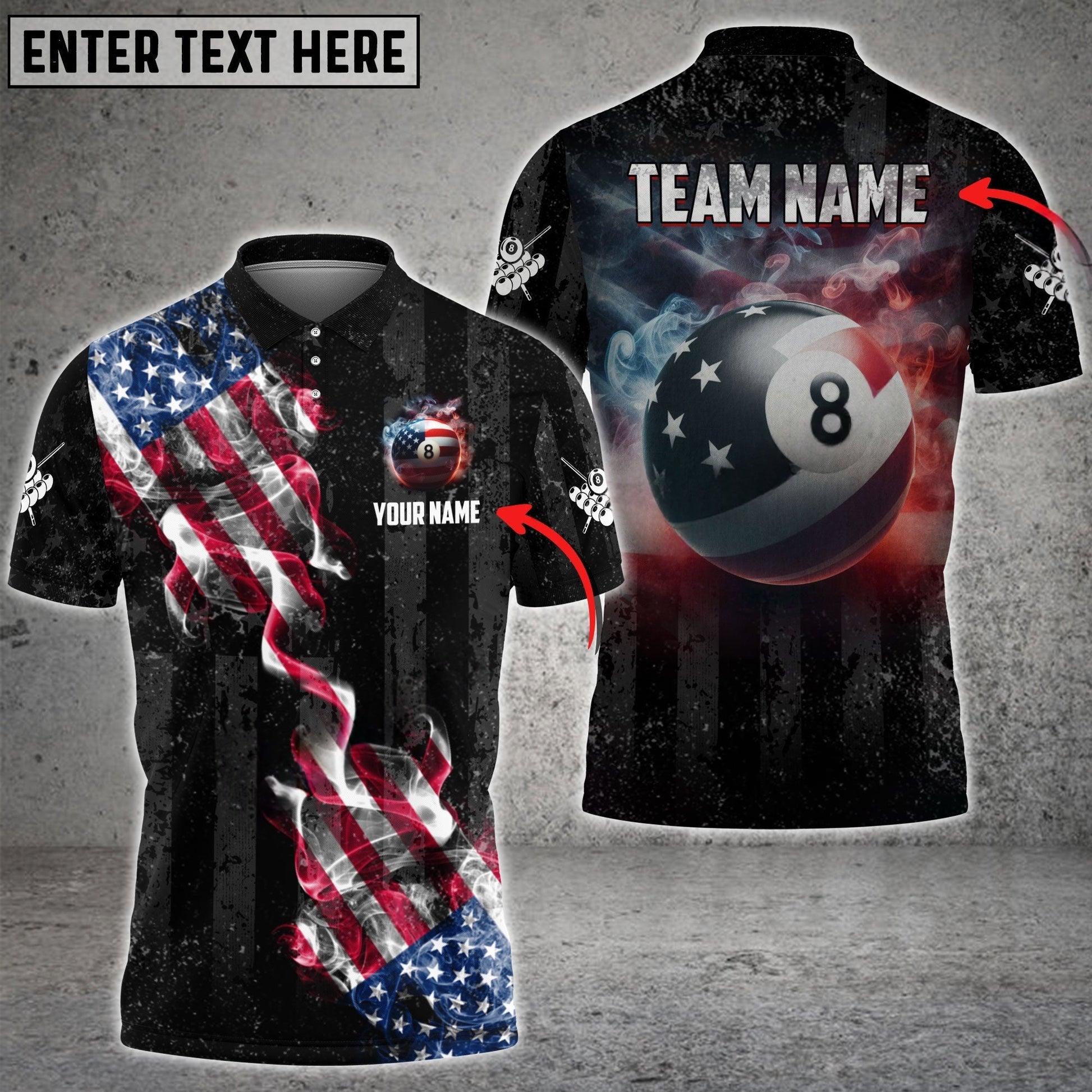 Billiards Ball 8 Pool Smoke US Flag Personalized Name, Team Name Unisex Shirt