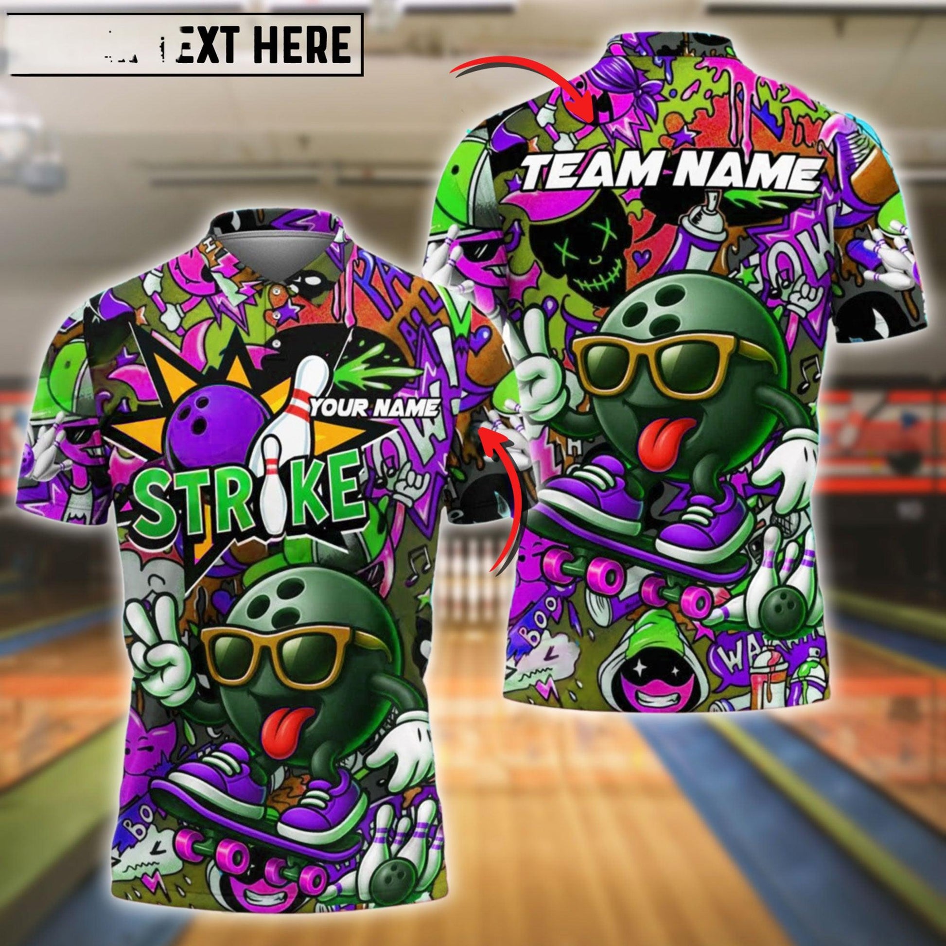 Bowling Street Strike Graffiti Skater Style Customized Name, Team Name 3D Shirt (4 Colors)