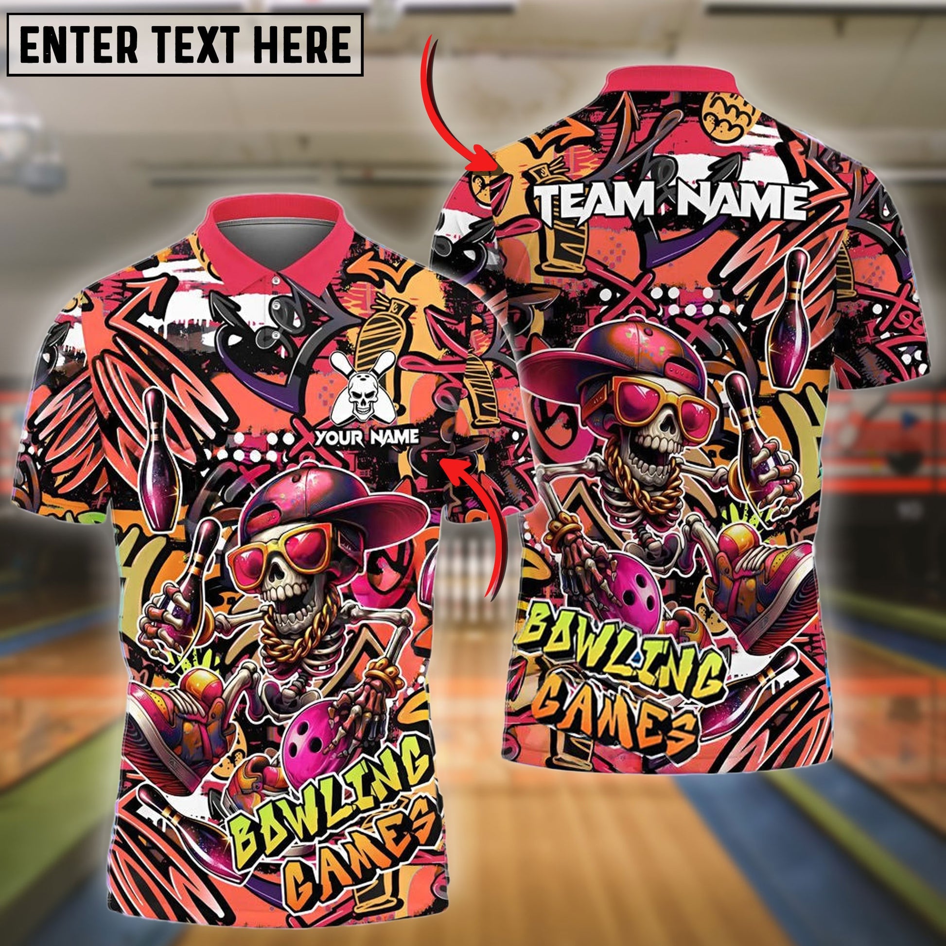 Bowling Funny Skull Colorful Graffiti Personalized Name, Team Name 3D Shirt (4 Colors)