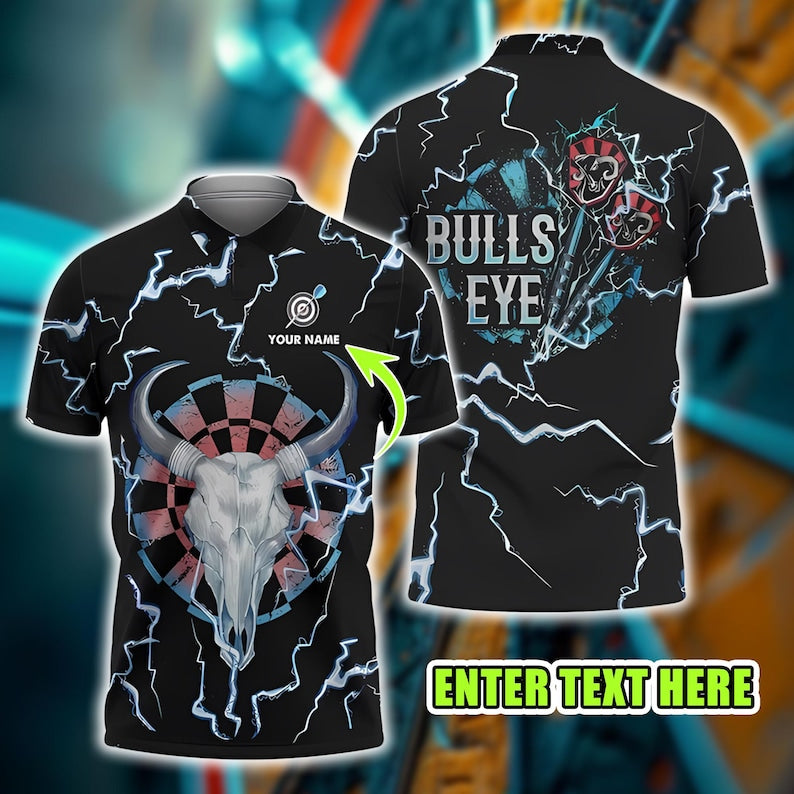 Bulls Eye Dart Polo Shirt, Custom Name 3D Dartboard Print, Dart Team Jersey Gift for Dart Lovers, Perfect for Darts Player.