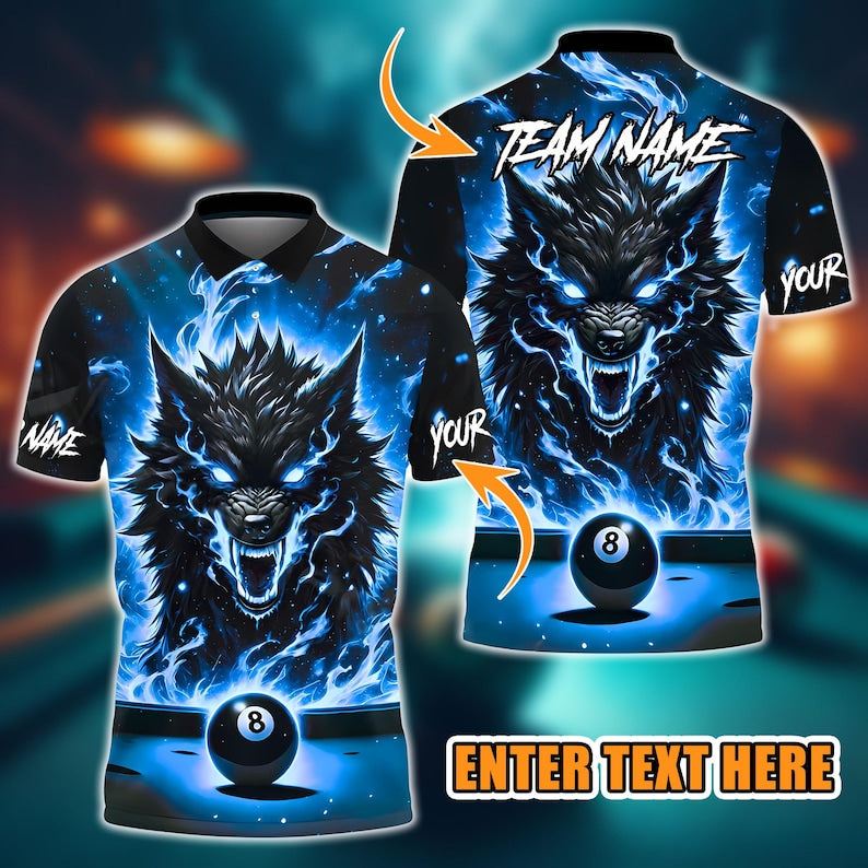 Custom Billiard Polo Shirt, 3D Fire 8 Ball Jersey with Personalized Name and Team, Multicolor Pool Gift for Players, Gift for men.