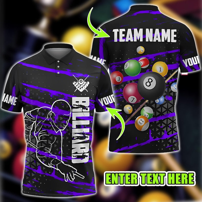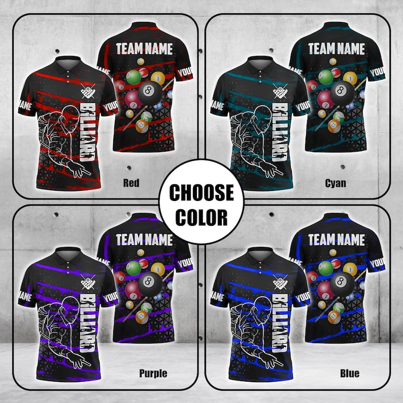 Custom Billiard Polo Shirt, 3D Pool Design with Personalized Name & Team, Multicolor Jersey, Perfect Gift for Players, Teams, and Men.