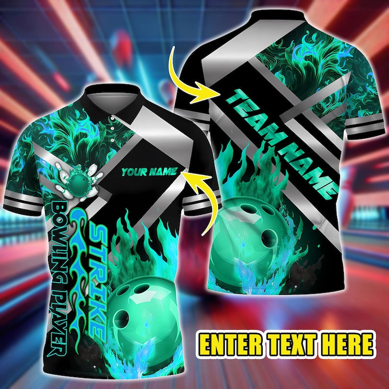 Custom Bowling Polo with Name, Custom Shirt 3D Ball and Pins Impact Design, Gift for Bowler, Sports Team Gift, Gift For Men.