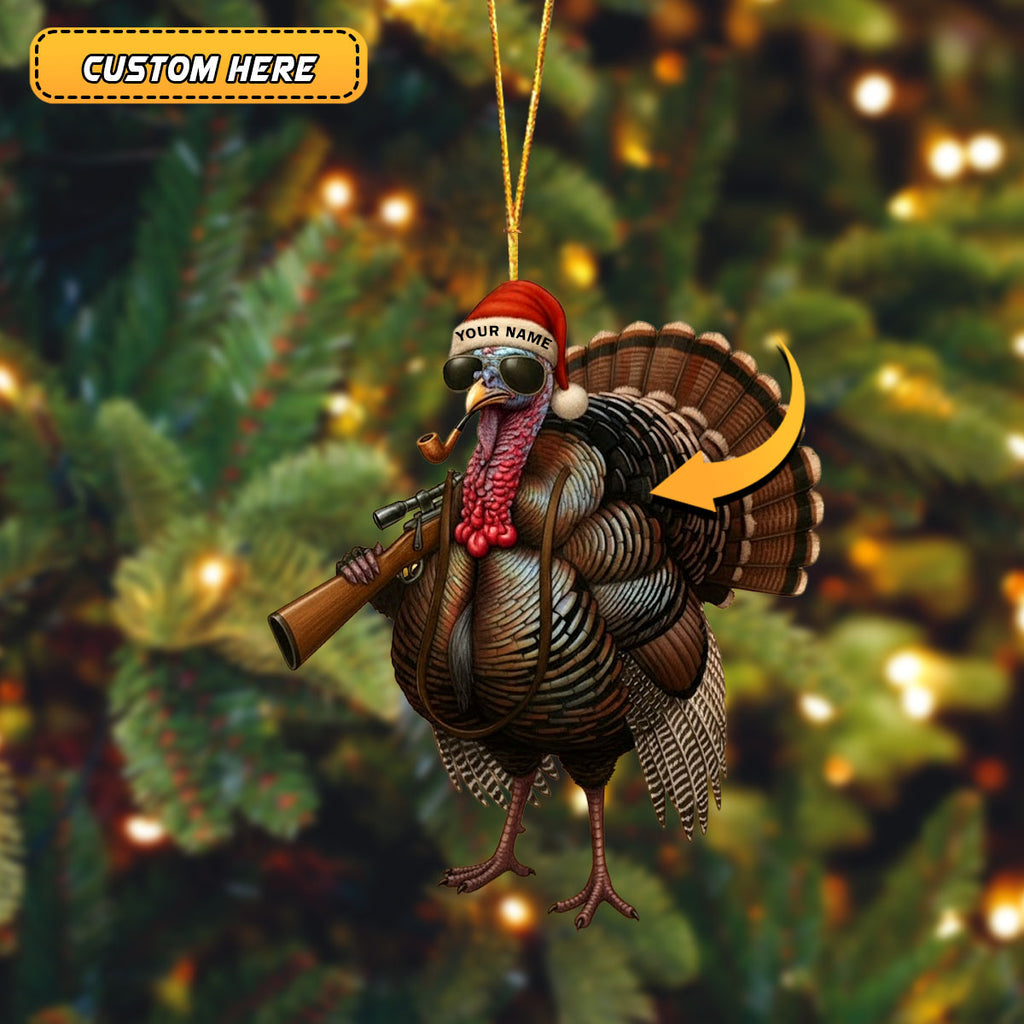 Custom Name Santa Hunting Ornament, Funny Hunter Christmas Tree Decoration