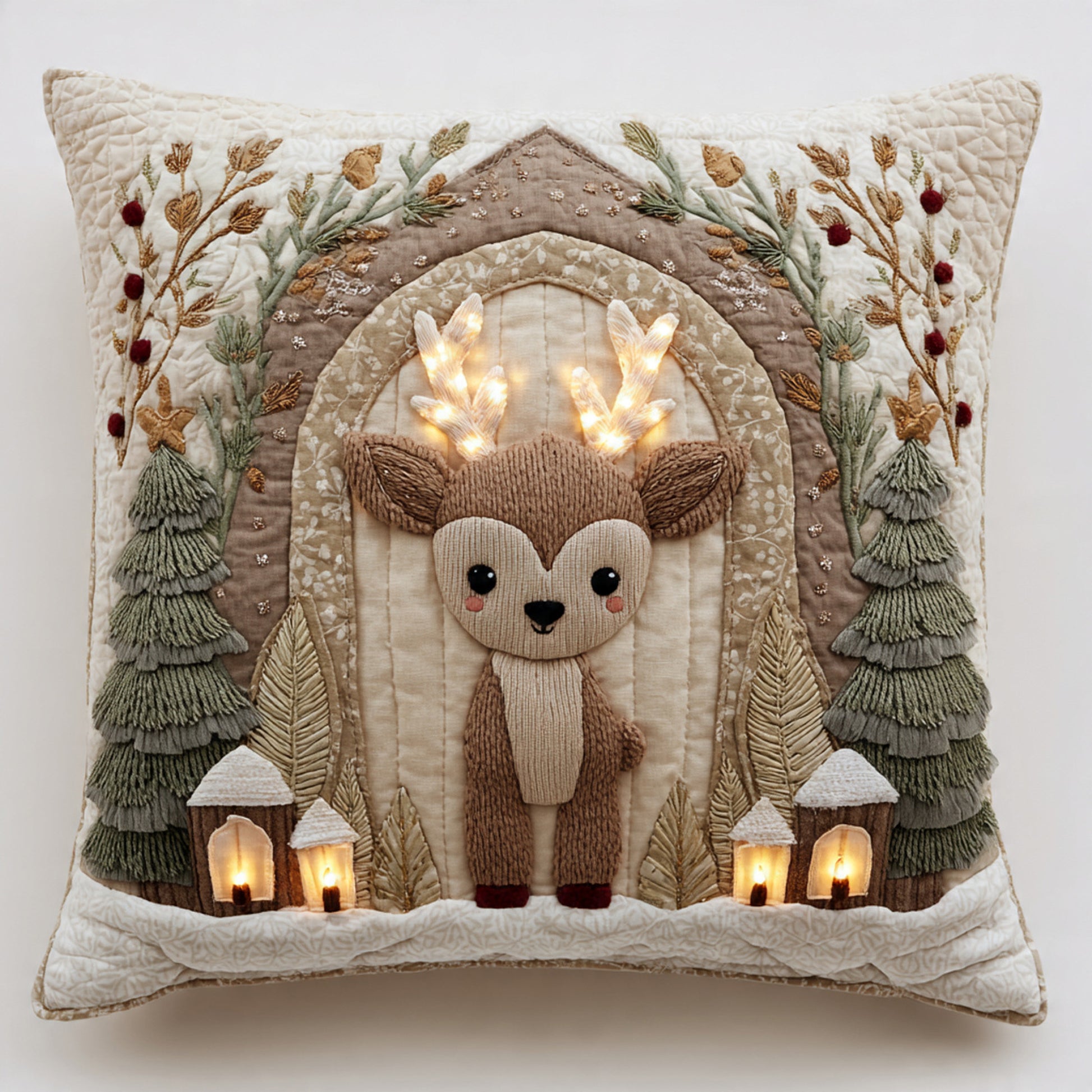 Light-Up Antler Reindeer Quilted Pillow — LED Lanterns, Magical Christmas Decor
