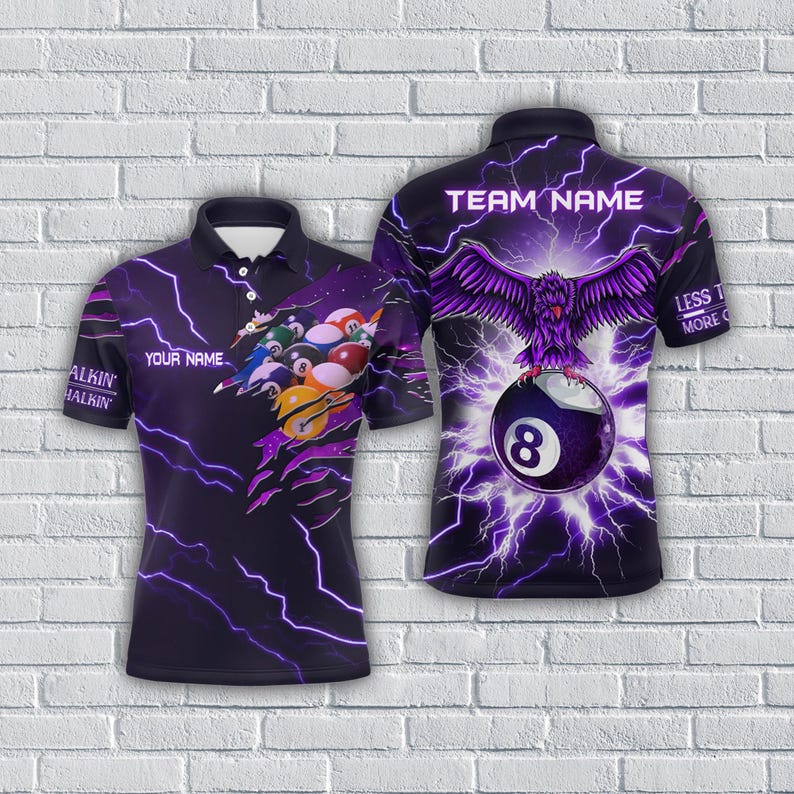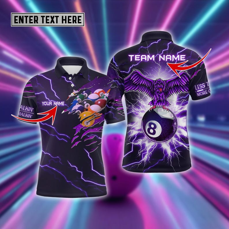 Personalized 3D Billiards Polo for Men, Custom Eagle Thunder 8 Ball Polo Shirt, Unique Pool Team Shirt, Gift for Friends.