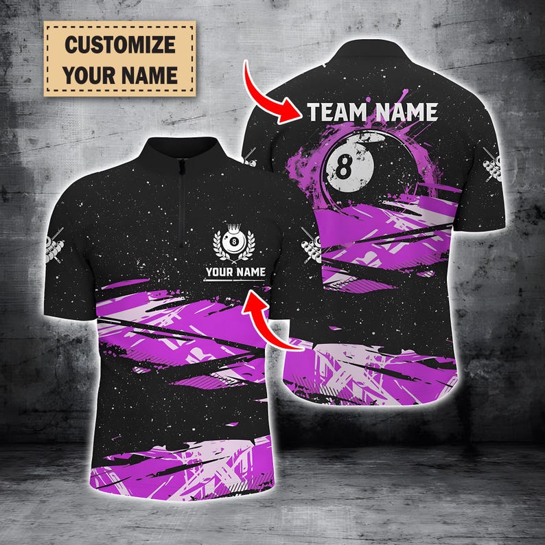 Personalized Billiard Balls Pink 3D Polo Shirts For Men, Custom Player Billiards Pool Jerseys, Best Pool Team Outfit, Player Gift Shirt.