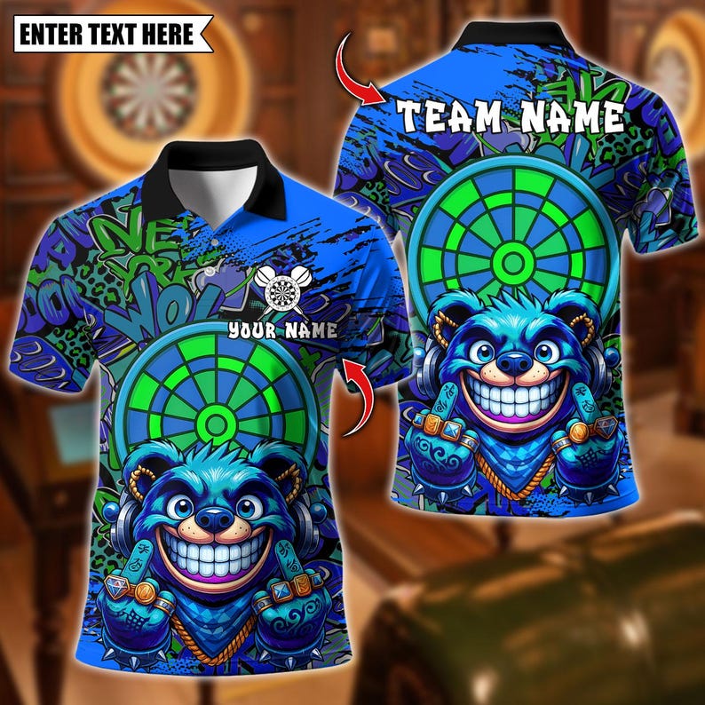 Personalized Name Dart Polo Shirt, Darts Gangster Bear Design ,Custom Team Shirt for Men, Gift for Darts Players