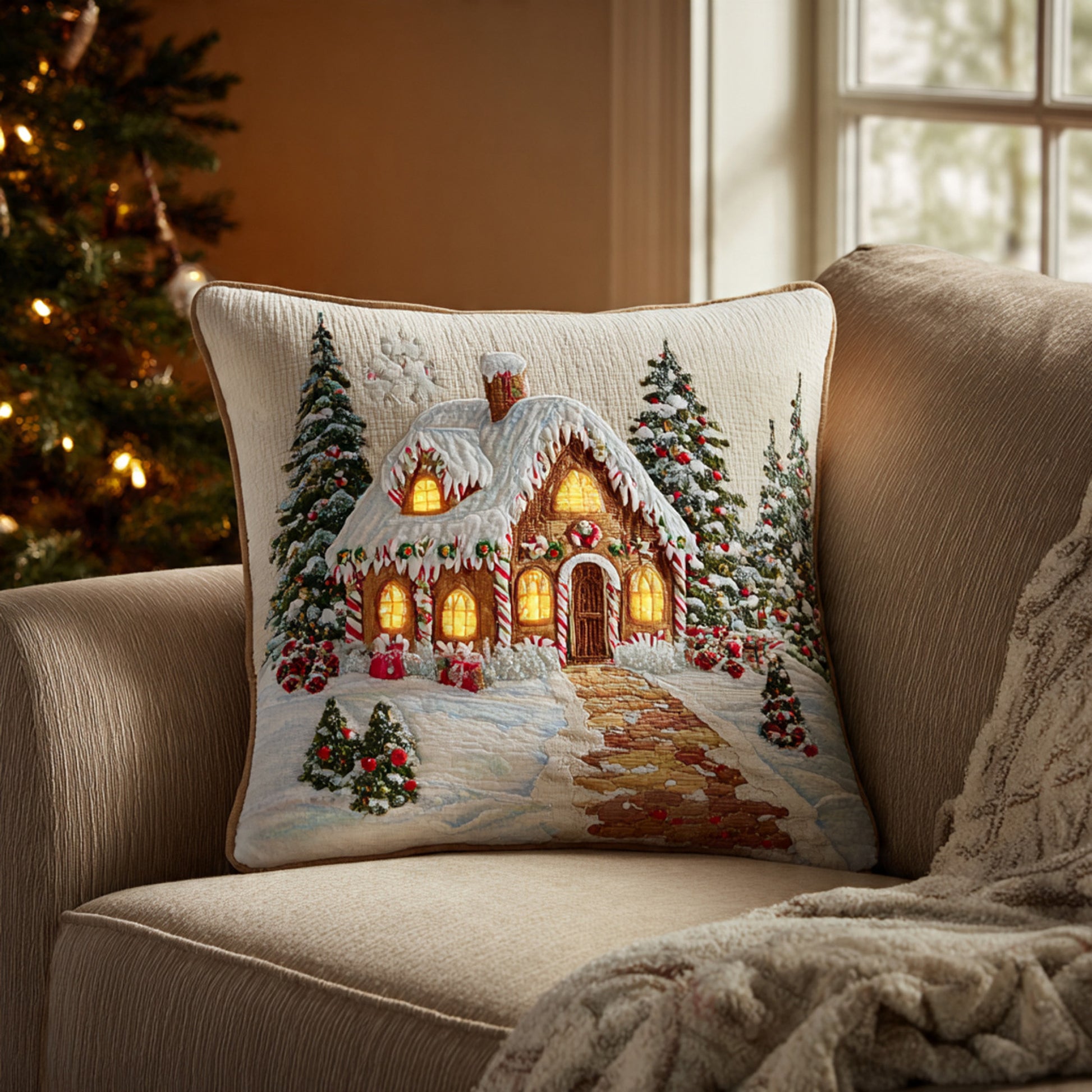 Warm Gingerbread Home LED Throw Pillow – Festive Winter Cabin Decor